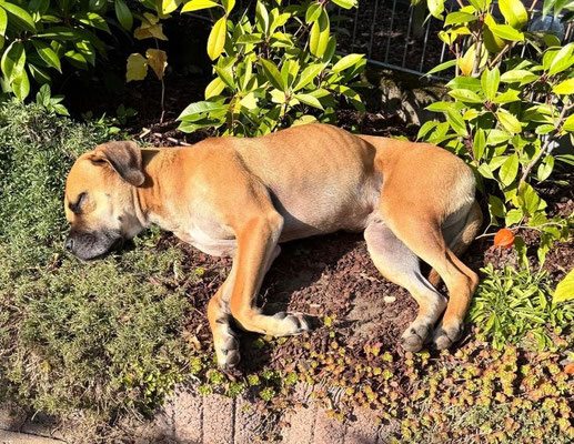 Anderen Hunden gegenüber verhält er sich bisher neutral bis freundlich. Einen engen Freund hat er im Tierheim bereits gefunden. Nämlich Tell. Und diese Freundschaft beruht auf Gegenseitigkeit. Sie gehen sehr liebevoll miteinander um. Sie liegen ständig zusammen und mal hat einer der beiden die Pfoten oder den Kopf auf dem anderen liegen. Das zu beobachten ist einfach nur schön. Man hat den Eindruck, sie trösten einander und geben sich in dieser Situation im Tierheim Halt.