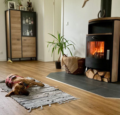 Wir haben einen Ausflug gemacht, zwischenzeitlich mussten wir mal den Kamin anmachen und das hat sie sehr genossen und sie hat so einen Teppich bekommen und für gut befunden.😅