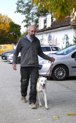 Natürlich haben wir auch getestet, wie Adali sich vor dem Tierheim mit Halsband und Leine, die sie aus ihrem früheren Leben nicht kannte, verhält. Beim ersten kleinen Ausflug im März war sie noch unsicher, doch nun zeigt sie sich draußen souverän und läuft schön an der Leine mit.