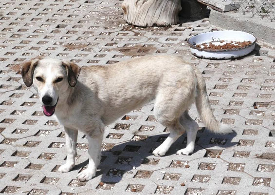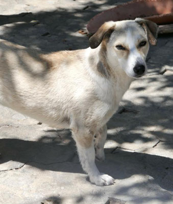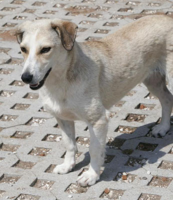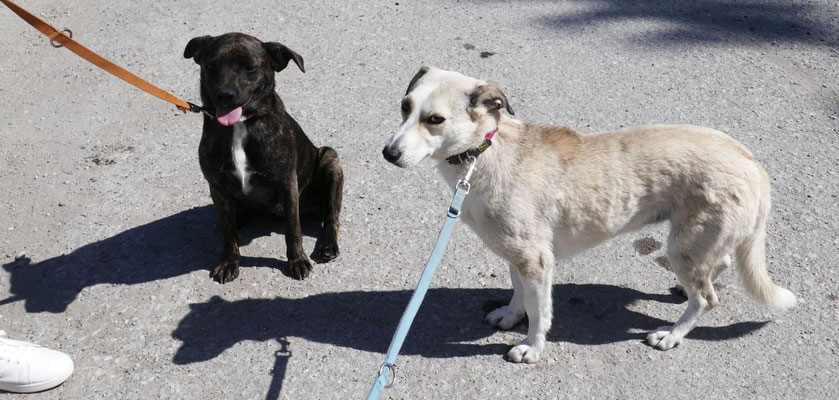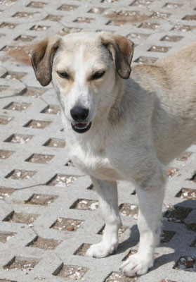 Im März haben wir sie bei unserem Besuch im Tierheim zum ersten Mal gesehen. Sie waren mit vielen anderen jungen Hunden in einem Auslauf untergebracht. Caris ist die ängstlichste des Geschwister-Trios und geht von sich aus leider noch gar nicht in den Kontakt mit uns Menschen. Sie zieht sich sehr zurück und bleibt stets im Hintergrund. Leider gibt es keine Mitarbeiter, die Zeit für die Sozialisierung der Hunde haben. Besonders für die schüchternen wäre ein regelmäßiger, enger Kontakt mit Menschen so wichtig für ihre Entwicklung.
