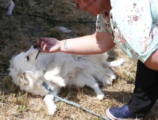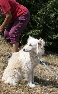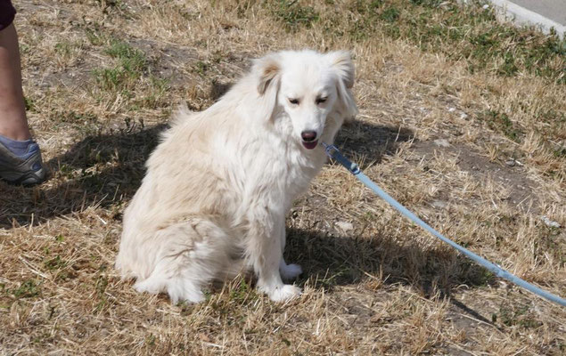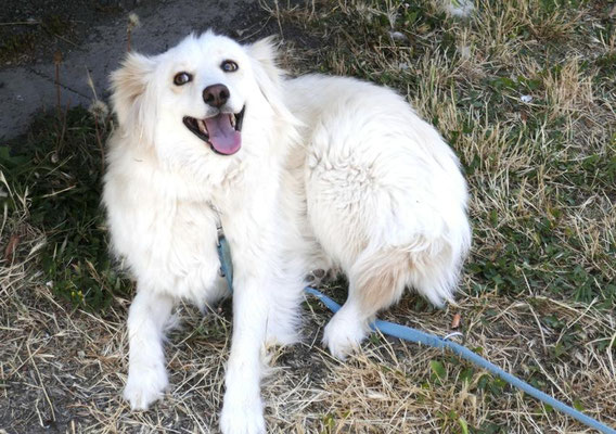 Fenella ist eine offene, aufgeschlossene Hündin, die uns Menschen mag und gern von sich aus auf uns zukommt. Sie freut sich über Leckerli und nimmt diese gern an. Was sie ebenso gerne annimmt sind Streicheleinheiten.