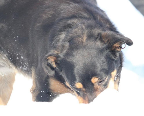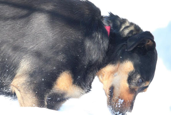 Kari ist nach wie vor skeptisch und kommt noch nicht von sich aus auf uns zu, wird aber langsam neugierig, wartet ab und beobachtet. Sie wird im Tierheim nun lernen, dass es auch nette Zweibeiner gibt. Noch zieht sie sich im Auslauf vor uns zurück und es braucht zwei Mitarbeiter, um sie einzufangen, aber sie lässt alles ganz brav über sich ergehen. Kari braucht ihre Zeit um Vertrauen aufzubauen und die soll sie auch bekommen. Jetzt von unseren Mitarbeitern und dann - von Ihnen.