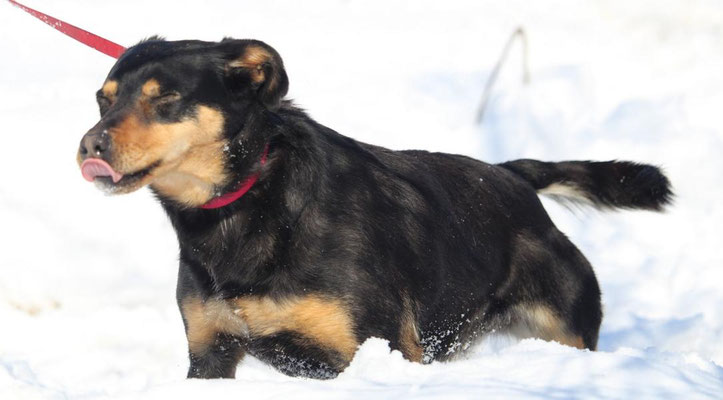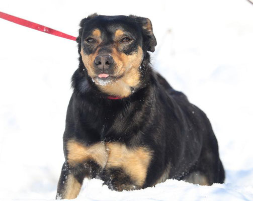 Heute, über ein Jahr später, sehen wir wunderbare Fortschritte. Bei unserem Besuch im Juni kam Kari im Auslauf immer öfter näher, um Leckerli aus der Hand zu nehmen. Dafür stellt sie sich sogar auf die Hinterbeine, ihr ganzer Körper wackelt vor Freude – alle frühere Skepsis scheint in diesen Momenten vergessen. Sie ist dabei nie aufdringlich, sondern einfach nur glücklich. Ein wenig handscheu ist sie noch, aber Geduld, liebevolle Führung und ein paar tolle Leckerli werden ihr helfen, auch diese Unsicherheit zu verlieren.