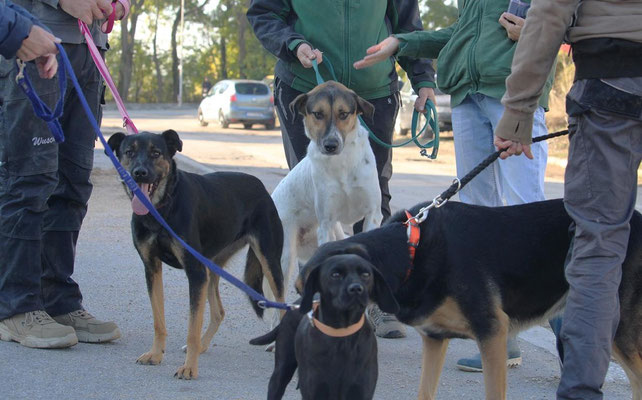 Nayra und Nyota zeigen sich als sehr offene Hündinnen, kommen gleich auf uns zu und holen sich ihre Streicheleinheiten ab. Njeri ist die zurückhaltendste der drei und zeigt sich noch ängstlich und unsicher, aber sie ist so lieb, dass wir sie ohne weiteres einfangen und nach draußen tragen können. Sie lässt alles über sich ergehen ohne auch nur Anzeichen einer Angstaggression zu zeigen. Für Njeri wäre eine Ausreise deswegen besonders dringend, damit sie sich in einem ruhigen Umfeld weiterentwickeln kann.