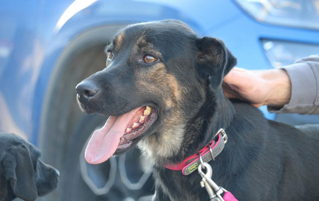 Wenn wir den Auslauf betreten, kommt Njeri nicht sofort auf uns zu, aber sie schaut, was wir machen und traut sich irgendwann ein Stück vor. Wir finden ihr etwas zurückhaltendes Wesen sehr angenehm und vor allem ist es besonders bei schüchternen Hunden etwas ganz Besonderes, wenn sie beginnen sich zu öffnen und mit der Zeit aufzublühen!