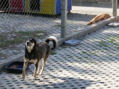 In ihrer Hundegruppe toben die Hunde oft und sind aktiv. Wir beobachten Sushi aber auch immer mal wieder, wie sie auf dem Dach der Hundehütte liegt, um ein wenig Ruhe zu haben. Bei unserem letzten Aufenthalt im Tierheim sind wir mehrmals mit Leckerli in den Auslauf gegangen und die Hunde haben sich wahnsinnig darüber gefreut. Sie kamen und haben und aus der Hand gefressen. Es wäre so wichtig, dass Sushi bald regelmäßigen und vor allem mehr Kontakt zum Menschen hat. Vielleicht bei Ihnen?
