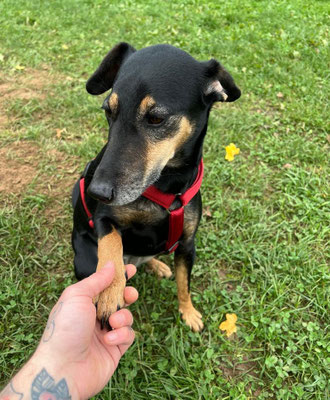 Lotte ist eine Hündin mit Charakter. Sie ist unheimlich intelligent und liebt es, neue Sachen zu lernen. Sie beherrscht auch schon einige Kommandos.