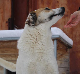 Anfangs war sie uns gegenüber noch etwas ängstlich. Nachdem wir ihr aber einige Tage lang regelmäßig ganz besondere Leckerbissen gaben, kam sie dann immer freudig an den Zaun, um uns zu begrüßen, und auch im Auslauf war sie offener. Das Eis war gebrochen. Liebe geht auch bei Hunden nicht selten durch den Magen. :-)