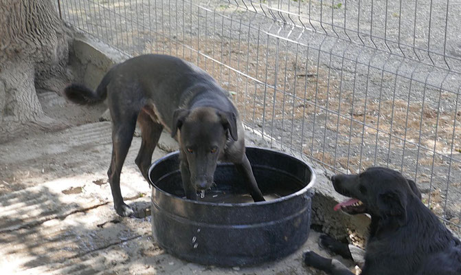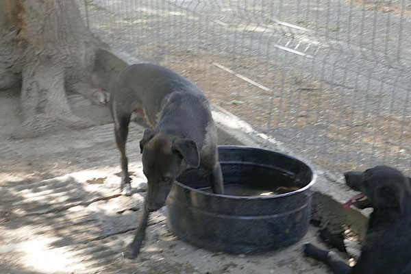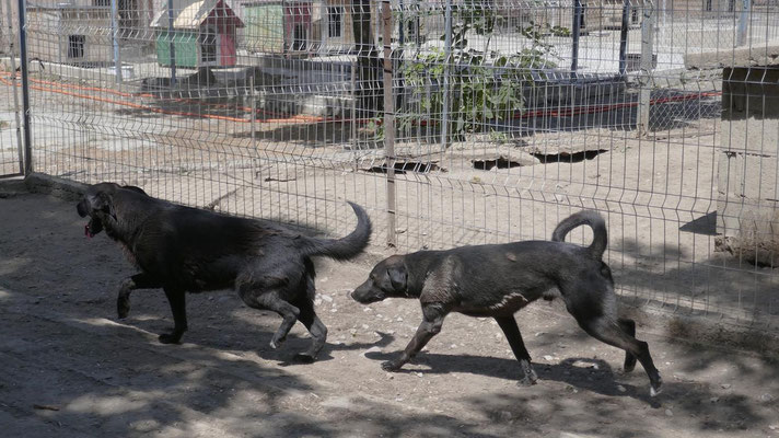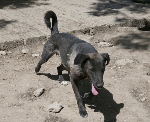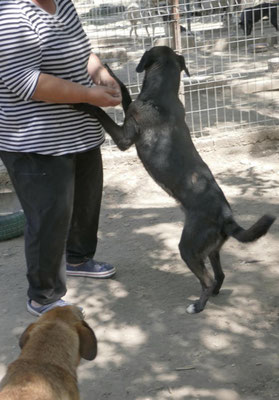 Borneo zeigte sich uns gegenüber offen und kam nach kurzem Kennenlernen auch auf uns zu. Altersgemäß ist er sehr verspielt und tobt auch gerne mit seinen Freunden durch die Enge des Auslaufs. Mit was sollen die Kleinen sich auch sonst die Zeit und den öden Tierheimalltag vertreiben?