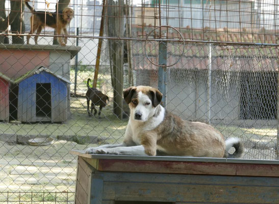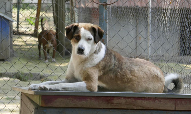 Campbell ist so ein hübscher Kerl. Im März haben wir ihn bei unserem Besuch im Tierheim zum ersten Mal gesehen. Er war – und ist dies leider immer noch - sehr zurückhaltend und geht von sich aus noch gar nicht in den Kontakt mit uns Menschen. Sobald wir den Auslauf betreten, zieht er sich zurück und bleibt im Hintergrund. Leider gibt es keine Mitarbeiter, die Zeit für die Sozialisierung der Hunde haben. Besonders für die schüchternen wäre ein regelmäßiger, enger Kontakt mit Menschen so wichtig für ihre Entwicklung.