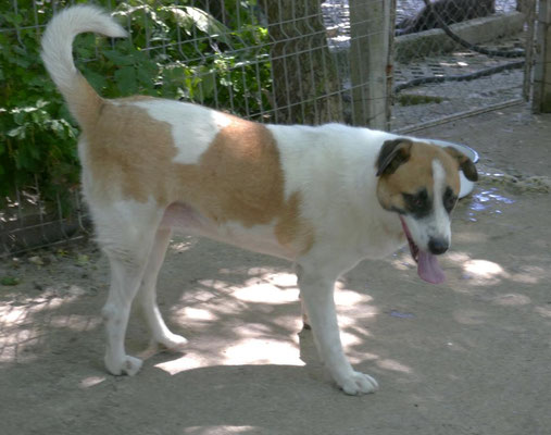 Jerry wurde wie Jakob ungefähr im Juli 2020 geboren. Er hat aktuell eine Schulterhöhe von 48 cm und könnte noch ein wenig wachsen. Er hat schönes, glattes, weiß-braunes Fell und besticht durch seine nach vorne heruntergeklappten Ohren. Seinen ersten Spaziergang außerhalb des Tierheims hat Jerry noch vorsichtig und verhalten, aber tapfer durchgestanden.