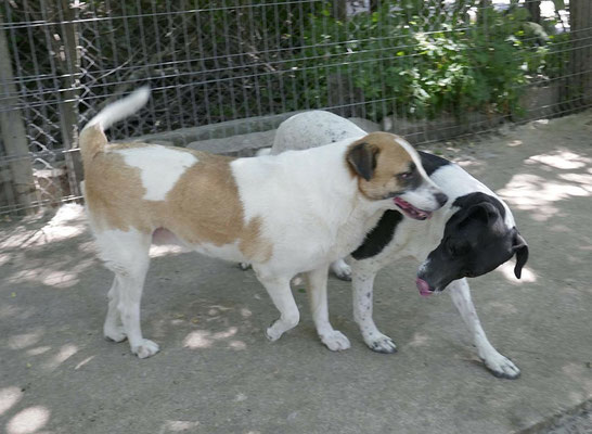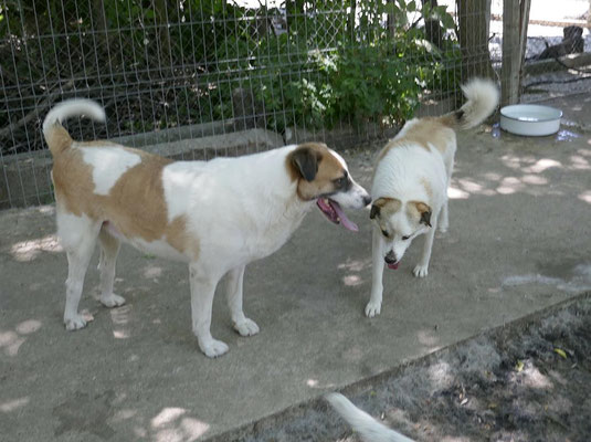 Beide Hunde waren, obwohl sie einige Zeit bei den Engländern verbracht haben sollen, nicht sehr aufgeschlossen und benötigen etwas Zeit, um Vertrauen zu fassen. Wir nehmen an, dass sie dort auch nur im Hof gehalten wurden, kaum Kontakt zu ihren "Lebensrettern" hatten und nur mit dem Nötigsten versorgt wurden. Das Nötigste hieß Futter und Wasser.
