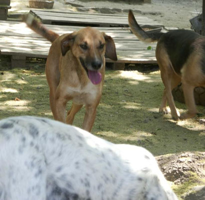 Leider hat er außerhalb der kleinen Tierheimwelt noch nichts kennengelernt. Trotz der wenigen Eindrücke, die er bisher erst hat sammeln können, zeigt er sich uns gegenüber offen und sucht auch den Kontakt zu uns Menschen. Wenn wir uns seinem Auslauf nähern, steht er schon am Zaun und wartet. Beim Betreten des Auslaufs sind wir schnell umringt von den jungen Hunden und auch Larry nähert sich. Er ist ein wirklich freundliches Kerlchen und, was sehr angenehm ist, überhaupt nicht aufdringlich.