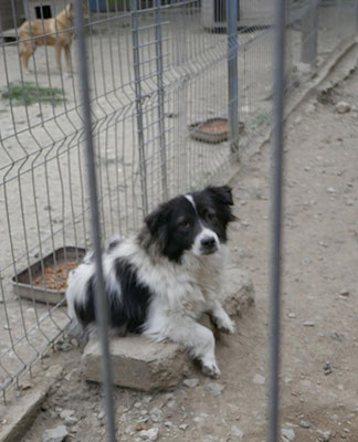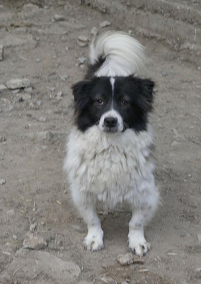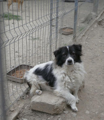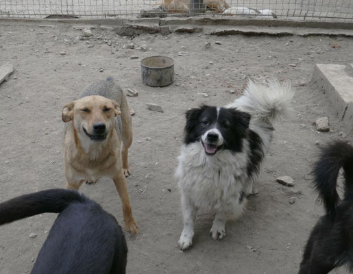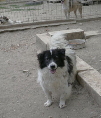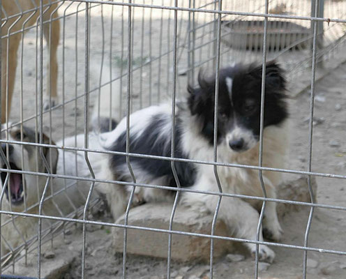Sie werden sich fragen, warum Zeno jetzt erst vorgestellt wird. Das hat einen einfachen Grund: Er ließ uns bisher nicht an sich heran und war so ängstlich, dass er immer vor uns davonrannte und sich noch nicht einfangen ließ. Bei unserem letzten Aufenthalt im September verbrachten wir täglich etwas Zeit in seiner Hundegruppe und brachten immer etwas Leckeres mit. Leckerli, Käse, Würstchen. Zeno blieb zusammen mit Jalo auf großem Abstand. Aber jeden Tag taute er ein klitzekleines Stückchen mehr auf und stand zuletzt sogar mit den anderen Hunden um uns herum, allerdings noch in der letzten Reihe. Wir denken, Zeno muss sich noch ein Stück weiter entwickeln und braucht noch etwas Zeit, bis wir ihn wirklich mit gutem Gefühl zur Vermittlung anbieten können, aber wir möchten ihn heute schon einmal präsentieren.