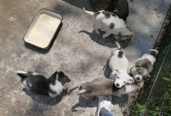 Die sechs Welpen sind gemeinsam aufgewachsen. Bei allen handelt es sich um kleine Kämpfer, denn sie haben den widrigen Bedingungen im Tierheim getrotzt und sind putzmunter. Natürlich kennen sie bisher nichts außer ihrem kleinen Auslauf im Tierheim, aber eines haben sie beim Toben und Spielen so ganz nebenbei gelernt: die für das Leben so wichtige Hundesprache.
