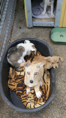 Cricket ist nun in einem Auslauf mit anderen kleineren Hunden untergebracht und dort geht es recht harmonisch zu. Alle sind gut sozialisiert, verstehen die Hundesprache und sie spielen schön miteinander.