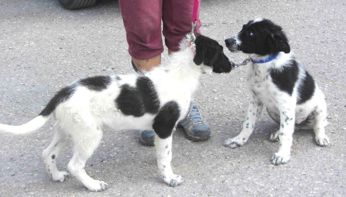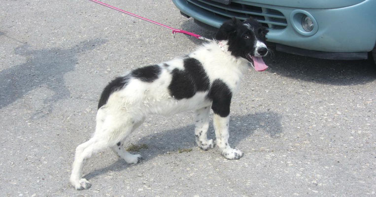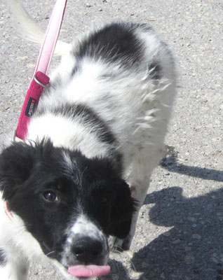 Vor wenigen Tagen wurde Kavita gemeinsam mit ihrem Bruder Knöpfli schon einmal vor dem Tierheim auf- und abgeführt. Beide waren richtig gut drauf, waren an allem interessiert und liefen schön mit Anni mit.